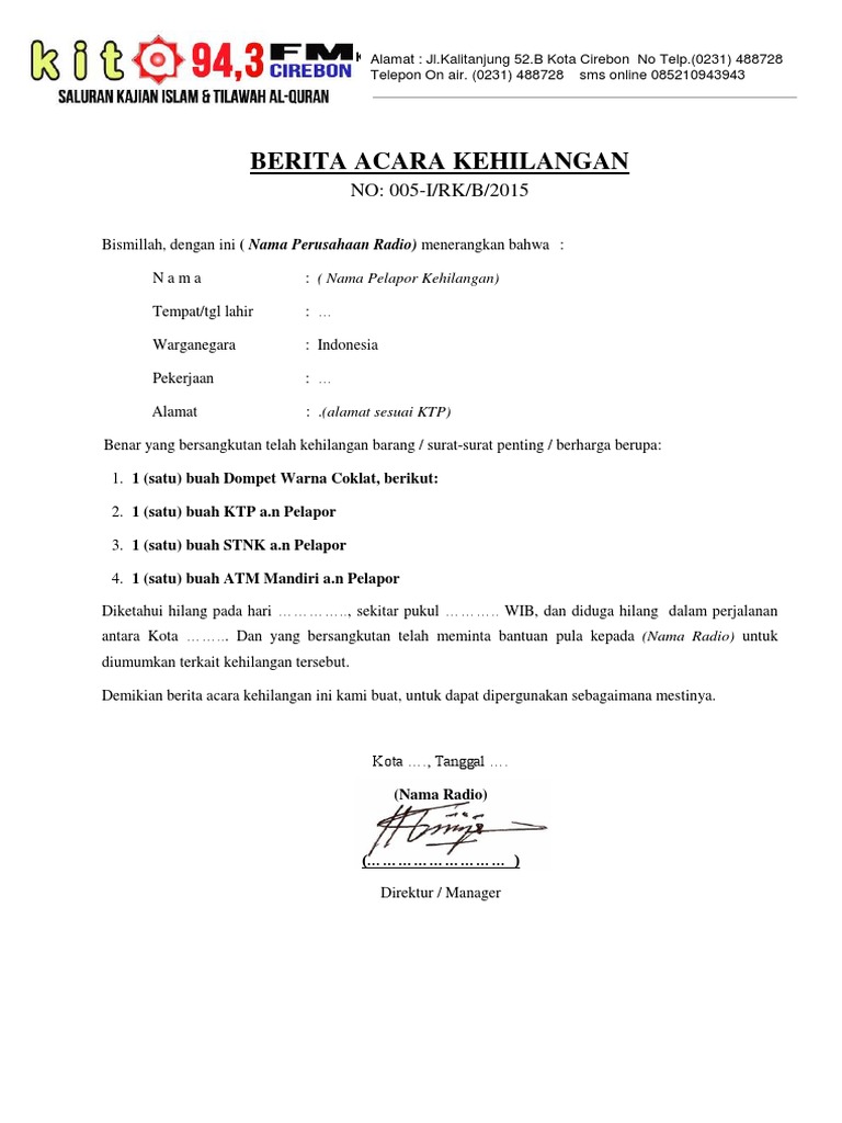 Contoh Surat Berita Kehilangan Dokumen Penting Pribadi Pdf